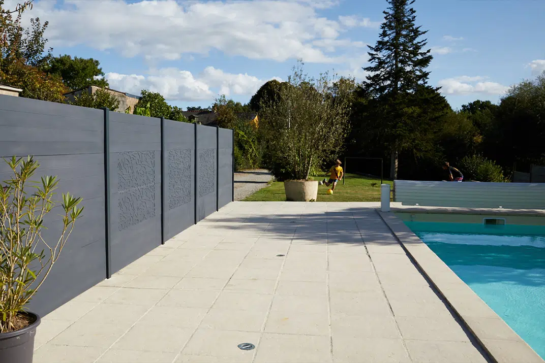 La clôture béton offre une excellente protection. Elle est conçue pour offrir une opacité totale, idéale pour préserver votre intimité face au voisinage ou à la rue. Cet aspect est idéal pour les familles avec enfants ou toute personne souhaitant profiter pleinement de son jardin sans vis-à-vis. Sa structure massive et stable est également parfaite pour les propriétaires d’animaux, ces derniers ne risquant pas de fuguer ou de s’échapper du terrain.