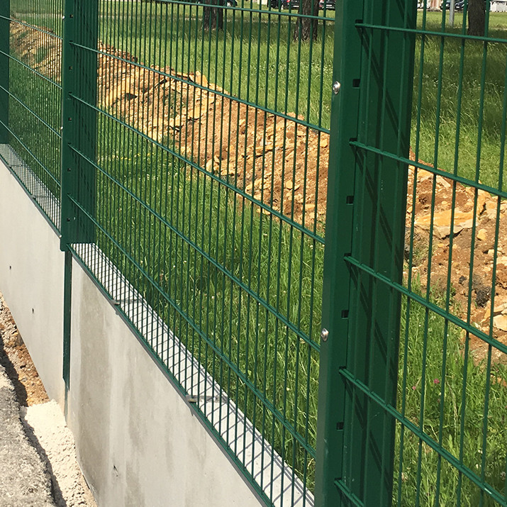 Plaque de soubassement forte épaisseur avec panneaux rigides, poteau béton avec clôture grillagée, ou clôture pleine en béton